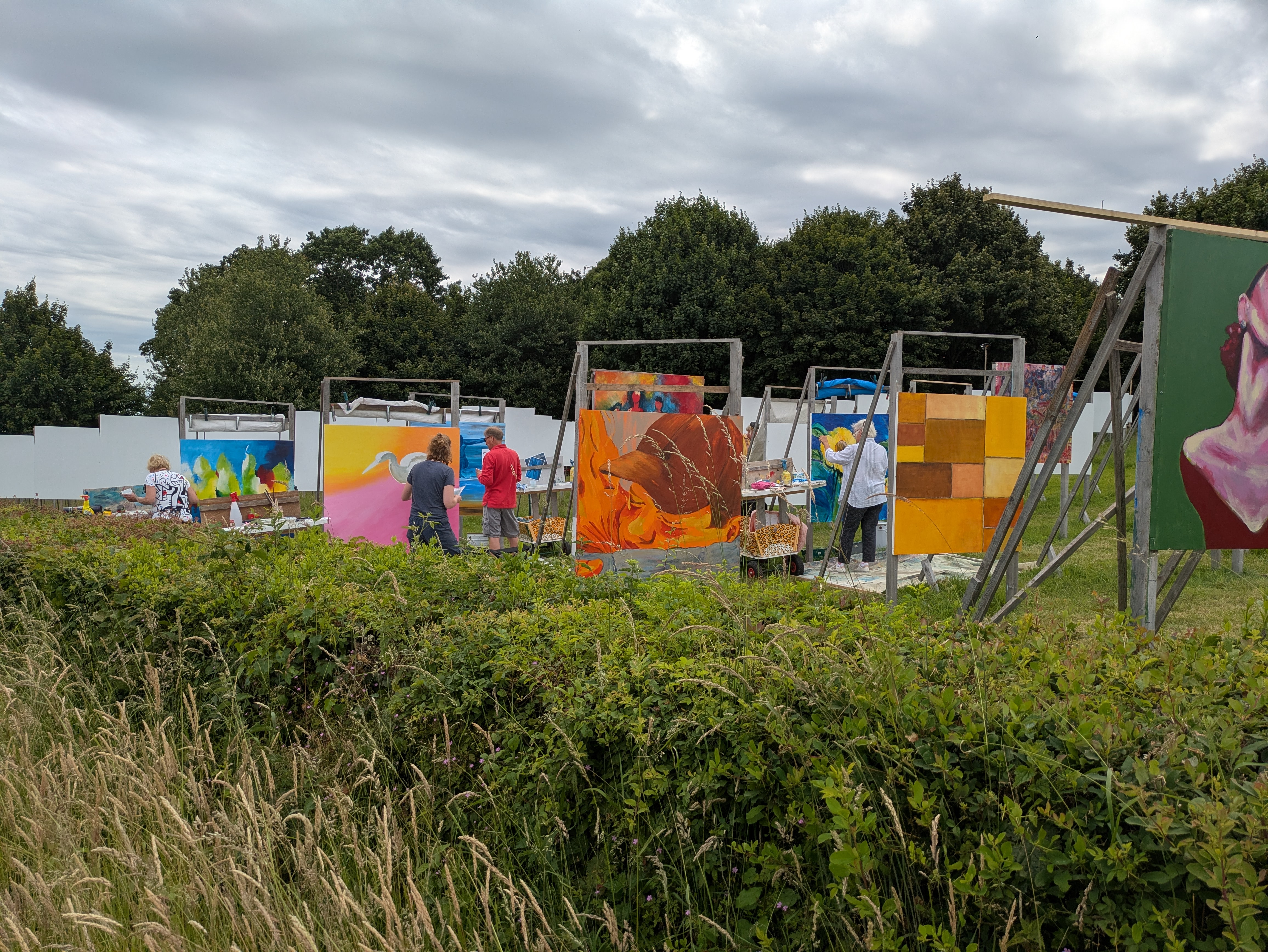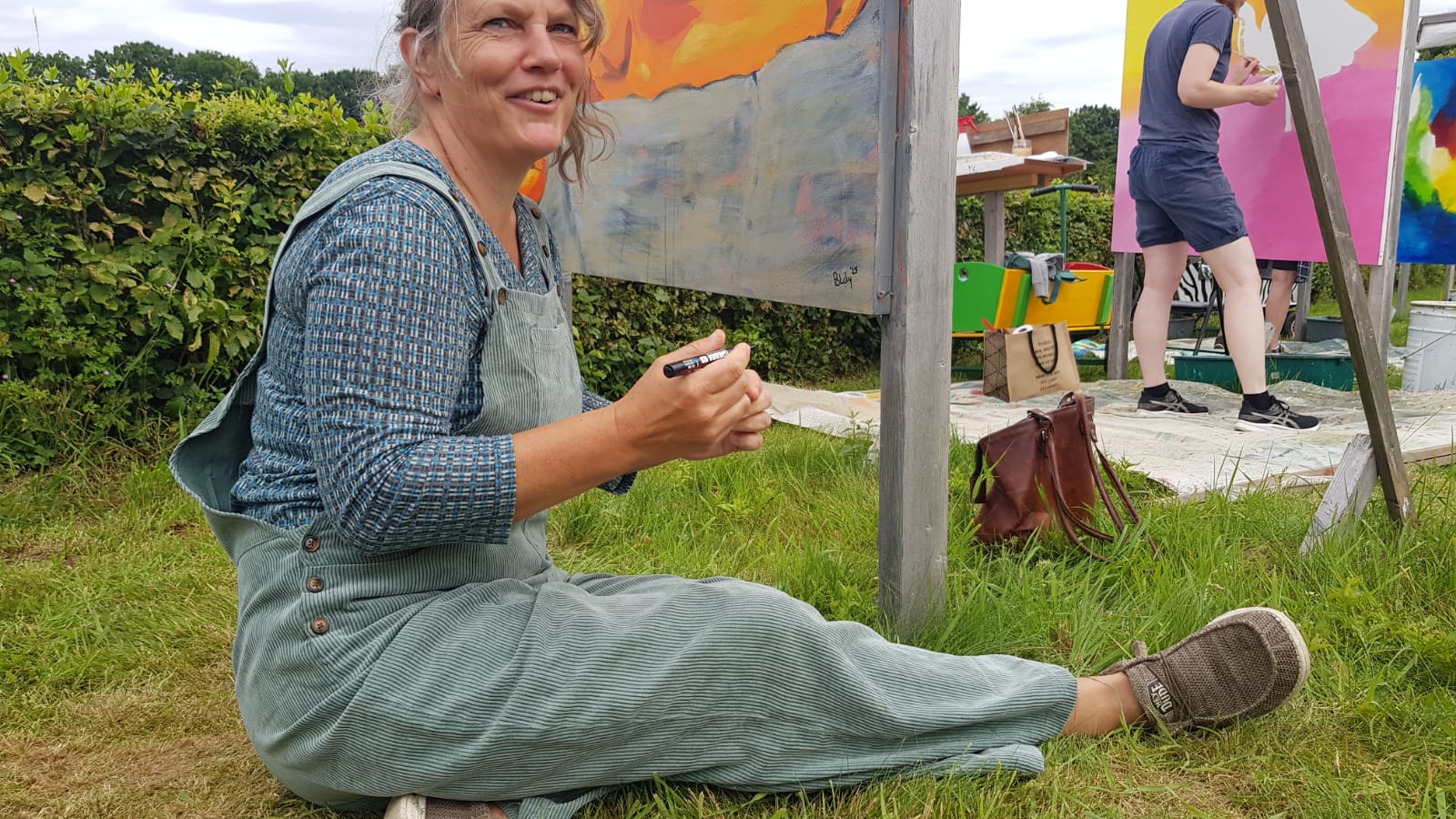 Meedoen met the Colorfield Performance is zo leuk. Samen met andere kunstenaars in één dag een schilderij schilderen in de buitenlucht. Bezoekers lopen langs en maken een praatje. Deze keer samen met mijn twee zussen een dag geschilderd.