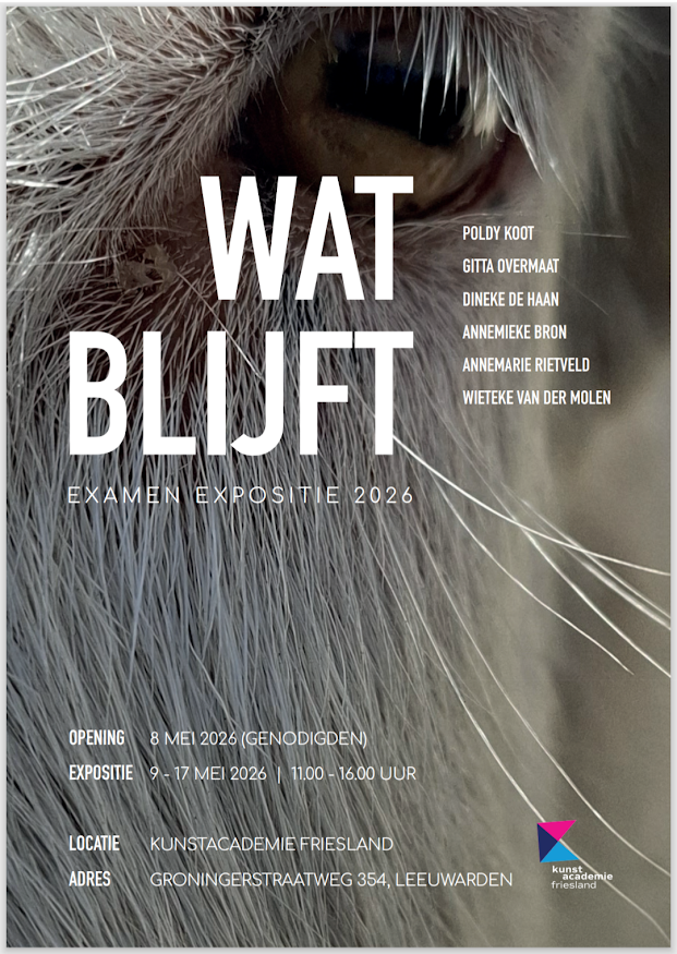 Van 9 tot en met 17 mei presenteert Kunstacademie Friesland haar jaarlijkse eindexamententoonstelling. Onder het thema ‘Wat blijft’ tonen afstuderende studenten nieuw werk waarin herinnering, verandering en betekenis centraal staan.