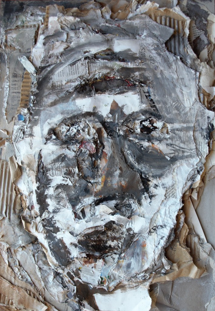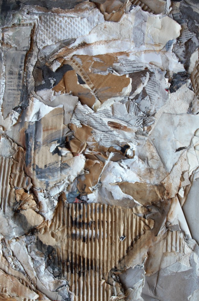 Decollage met acryl – in baklijst – 50 x 32 cm – 2018 – NTK
