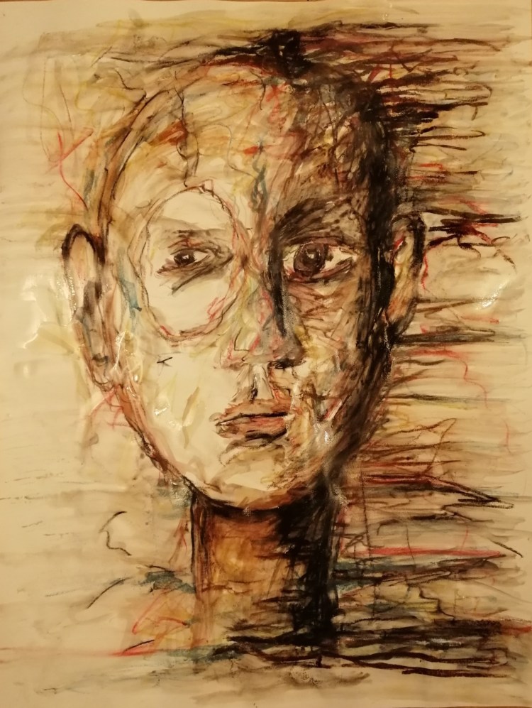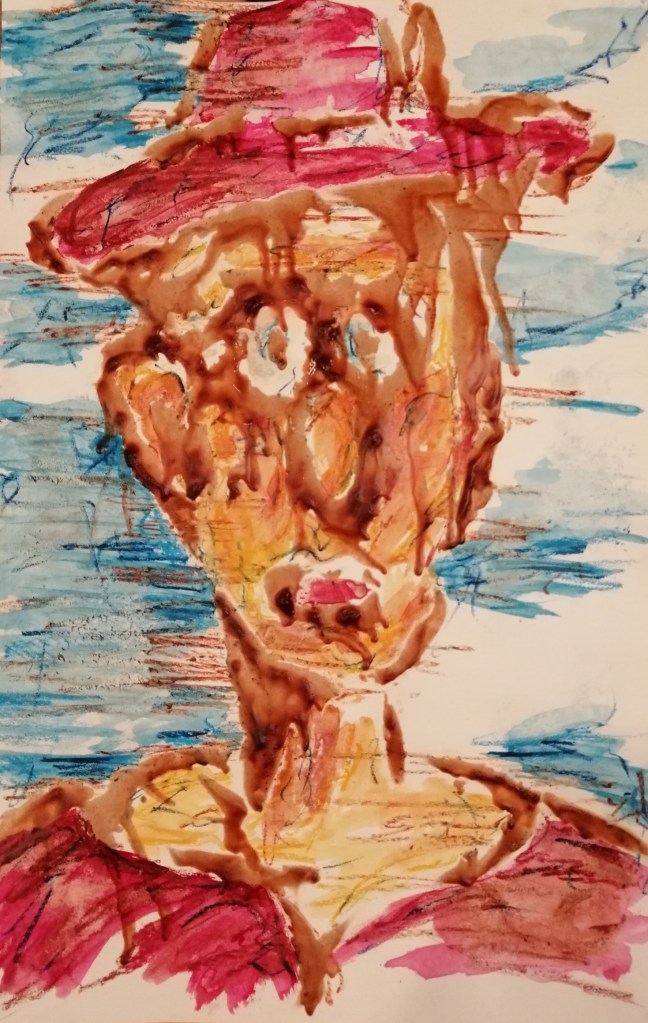 Aquarelverf, pastelkrijt en was op papier – 80 x 60 cm – 2020 – TE KOOP –
