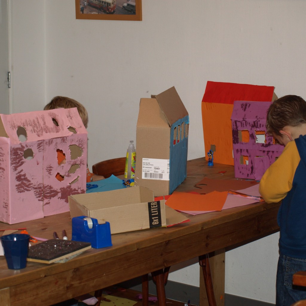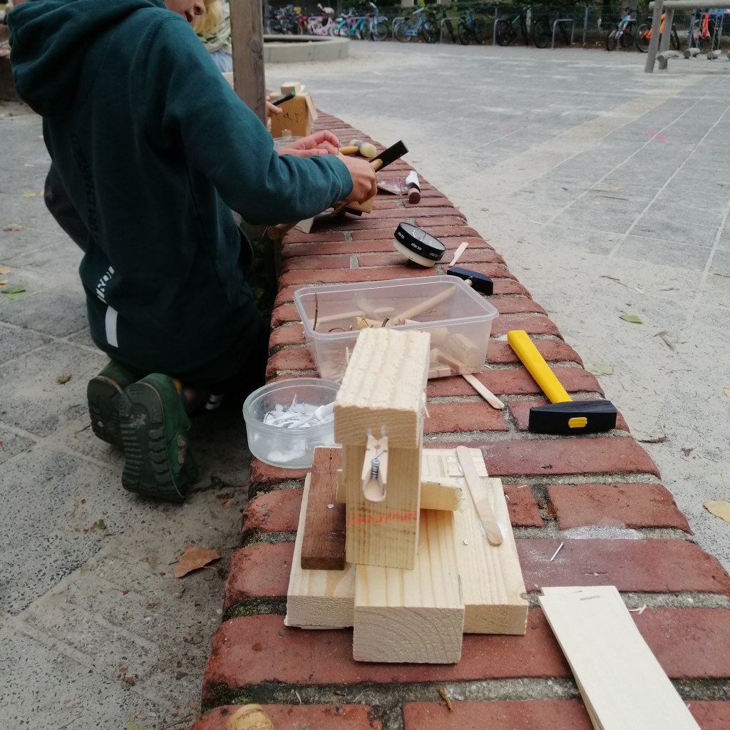 Werken met hout gekoppeld aan de geschiedenislessen.