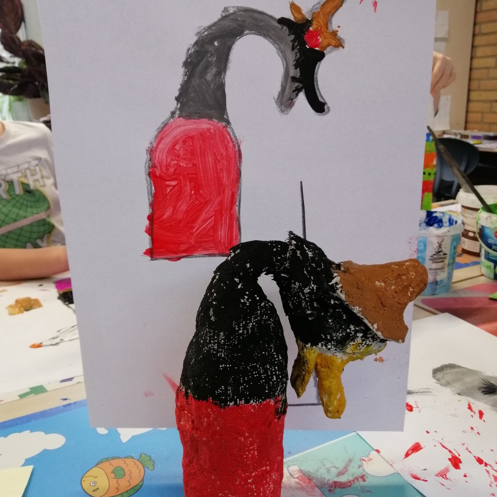 We maken eerst een schets om uit te proberen hoe we de pechvogel willen schilderen.